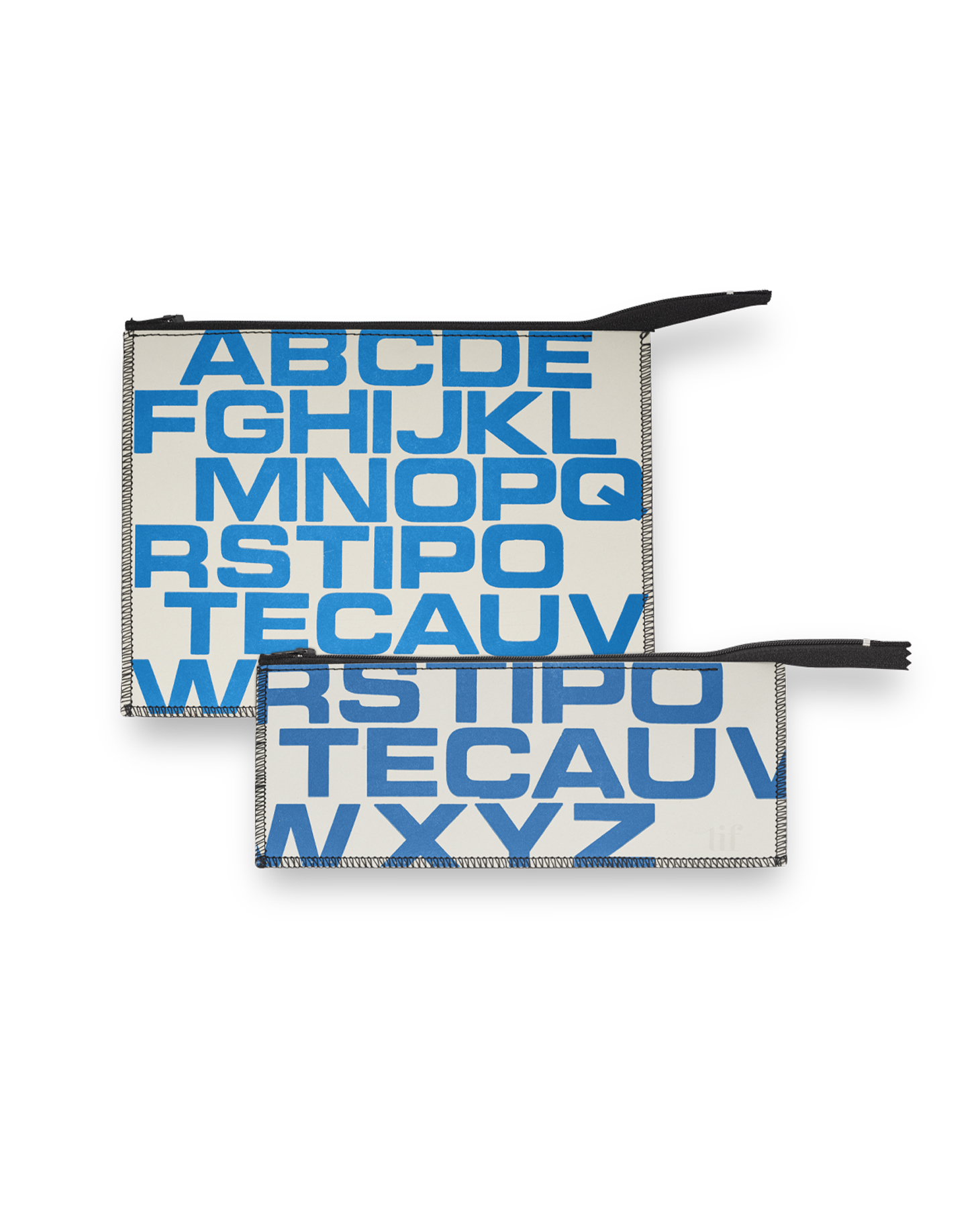 Il design dell'astuccio "Alphabet" ha preso ispirazione dal carattere Microgramma, presente nell'Archivio di Tipoteca: lo stile quadrato delle lettere si presta a creare la trama perfetta per questo astuccio!