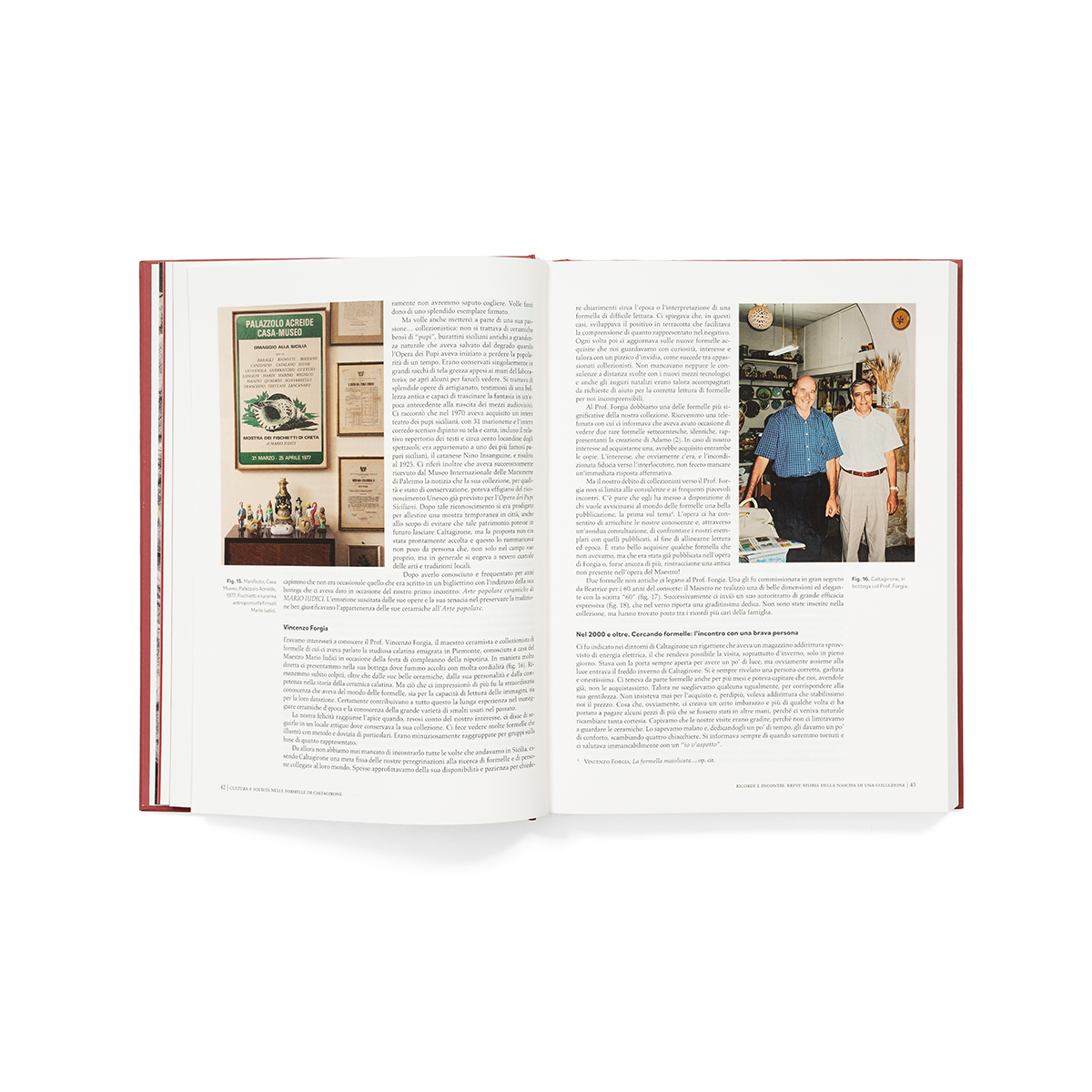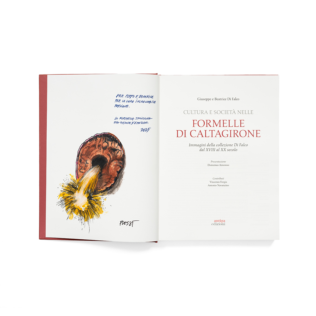 Sulla millennaria storia della ceramica di Caltagirone molto è stato scritto, ma poco si sa della formella maiolicata usata dal ’700 come stampo per dolci, specialmente da quando il suo uso si è drasticamente ridotto, dagli anni ’50 dello scorso secolo, e l’oblio è sceso su quelli che si ritenevano arnesi da cucina caduti in disuso. Questo libro le presenta sotto una luce diversa, illustrando le splendide immagini che esse racchiudono e che gli Autori hanno collezionato in oltre 46 anni di appassionate ricerche. Oltre 1000 immagini ci presentano scene di vita reale, dalla religione al lavoro, dalla famiglia alla politica, con incursioni nelle arti decorative e nelle modalità talora clandestine di utilizzo delle scritte in tempi in cui non c’era il cellulare. Sfogliare il libro dà così la sensazione di aver trovato un vecchio album dimenticato di foto del ’700/’800 che con freschezza ci accompagna a fare una passeggiata in una fiorente città siciliana, palpitante di vita, entrando nelle case popolari e nei salotti di nobili e prelati, nelle numerose botteghe dei ceramisti e partecipando nelle vie e nelle piazze alla vita di tutti i giorni.