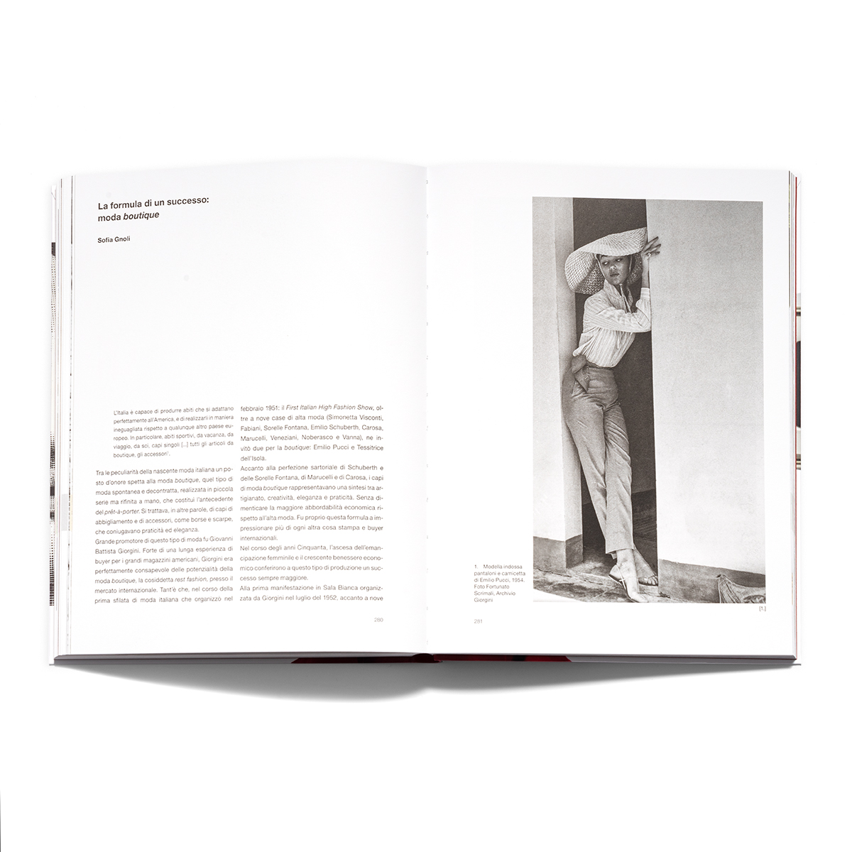Gli anni Cinquanta rappresentano anche per la moda un decennio di fondamentale importanza: con la prima sfilata fiorentina del febbraio 1951 nasce ufficialmente la moda italiana. Il volume dà conto di questa emozionante traiettoria: i più celebri modelli del periodo, abiti e accessori, firmati da talenti creativi destinati a grandi successi. Nella promozione della nascente moda italiana sul piano internazionale si miscelano sapientemente ingredienti unici, come il patrimonio culturale italiano, un’artigianalità di altissimo livello e la vetrina offerta dalle produzioni cinematografiche, dal momento che le migliori firme italiane annoverano tra la propria clientela le stelle del cinema hollywoodiano. Nasce così l’Italian Style, all’insegna dell’entusiasmo e della gioia ritrovata.