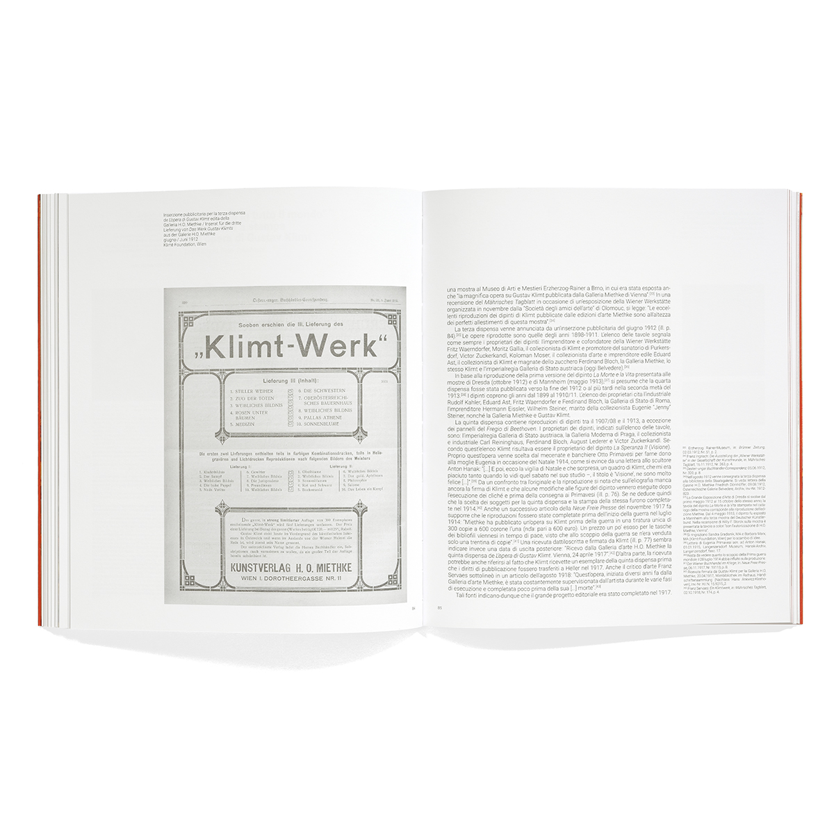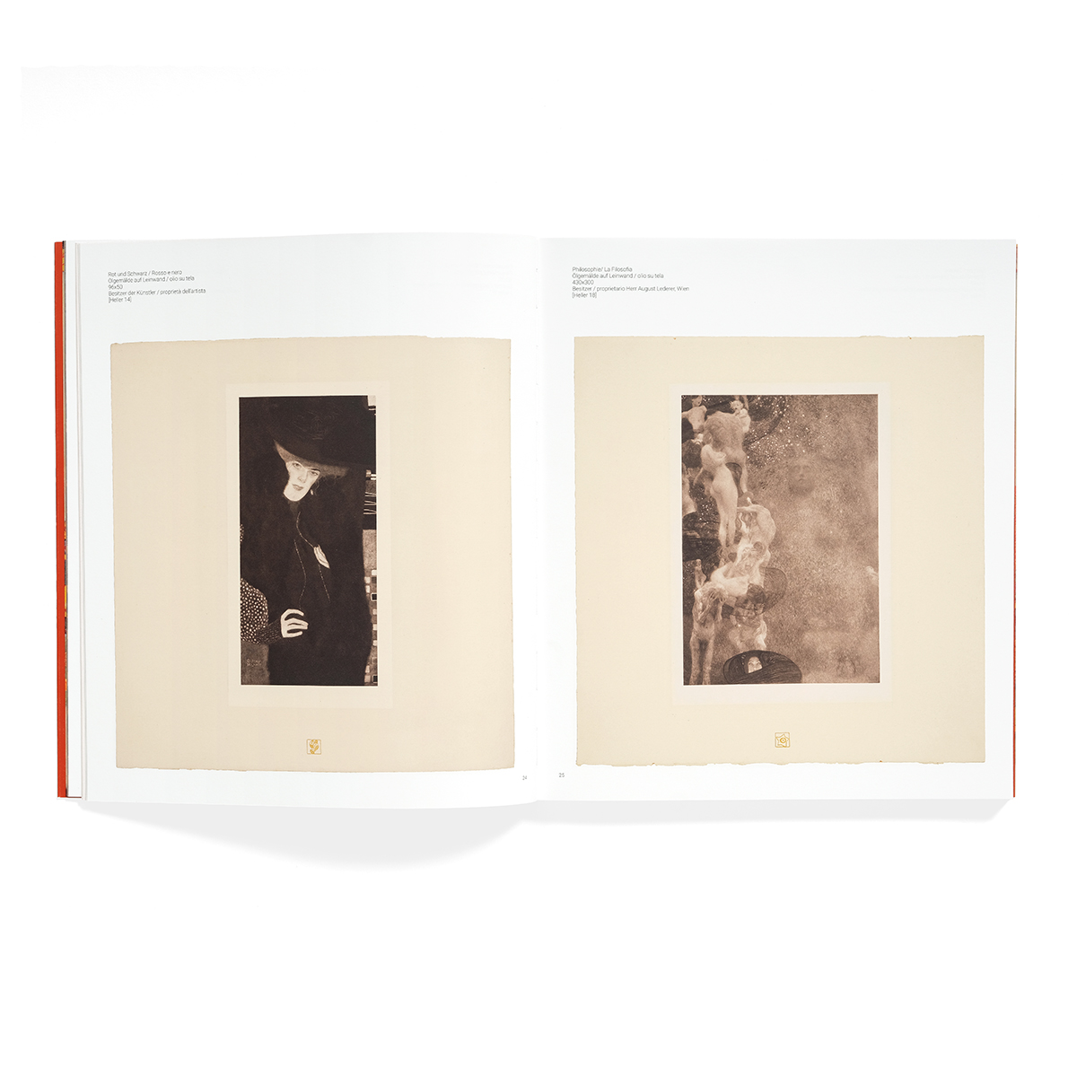 La qualità grafica delle riproduzioni in collotipia raggiunta dalla Tipografia di Stato austriaca esalta il valore estetico di questi fogli e delle cartelle a tiratura limitata che li contengono e dimostra quanta importanza essi abbiano per la ricezione dell’artista. Il volume non intende solo presentare i capolavori del grande artista mitteleuropeo, ma anche far conoscere e valorizzare dei prodotti artistici di straordinaria fattura, summa di squisita eleganza e sapienza esecutiva, massimo obiettivo delle arti viennesi attorno al 1900.