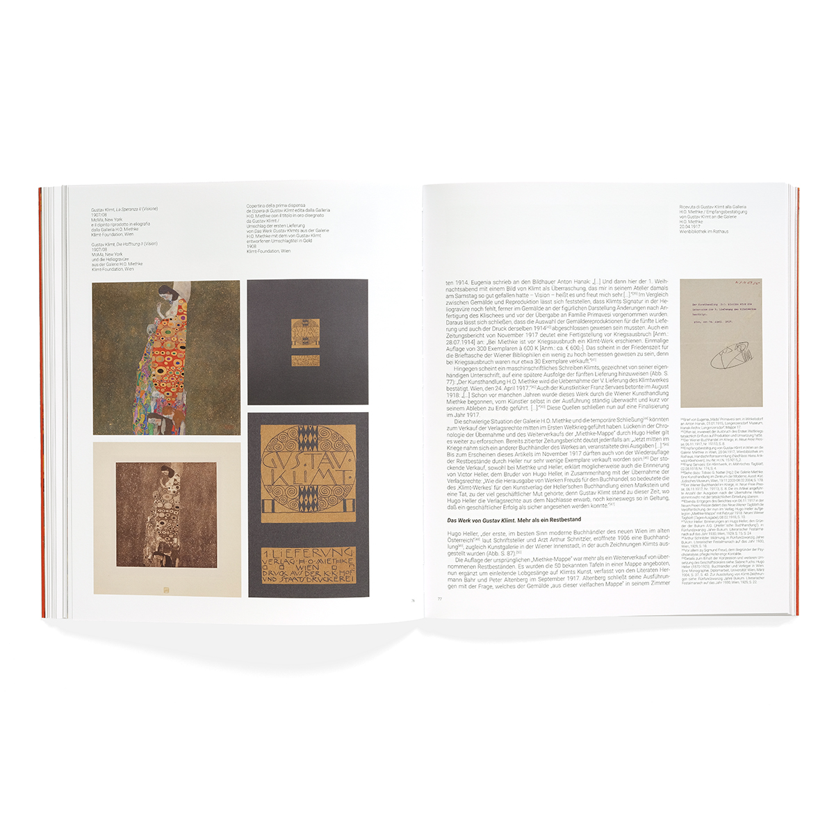 Pochi artisti tra XIX e XX secolo possono vantare un costante interesse verso le loro opere come il viennese Gustav Klimt, figura di spicco che ha rivoluzionato il mondo delle arti figurative. Il volume rilegge la sua opera attraverso documenti artistici, che mettono in scena, grazie a un elaborato procedimento a stampa, i capolavori pittorici e grafici klimtiani, e che la critica ha considerato solo marginalmente. Le tre cartelle: Hugo Heller (Das Werk von Gustav Klimt, 1918), Gilhofer & Ranschburg (Gustav Klimt. Fünfundzwanzig Handzeichnungen, 1919), Max Eisler (Gustav Klimt. Eine Nachlese, 1931) sono la dimostrazione dell’ininterrotta attrazione esercitata dall’opera klimtiana.
