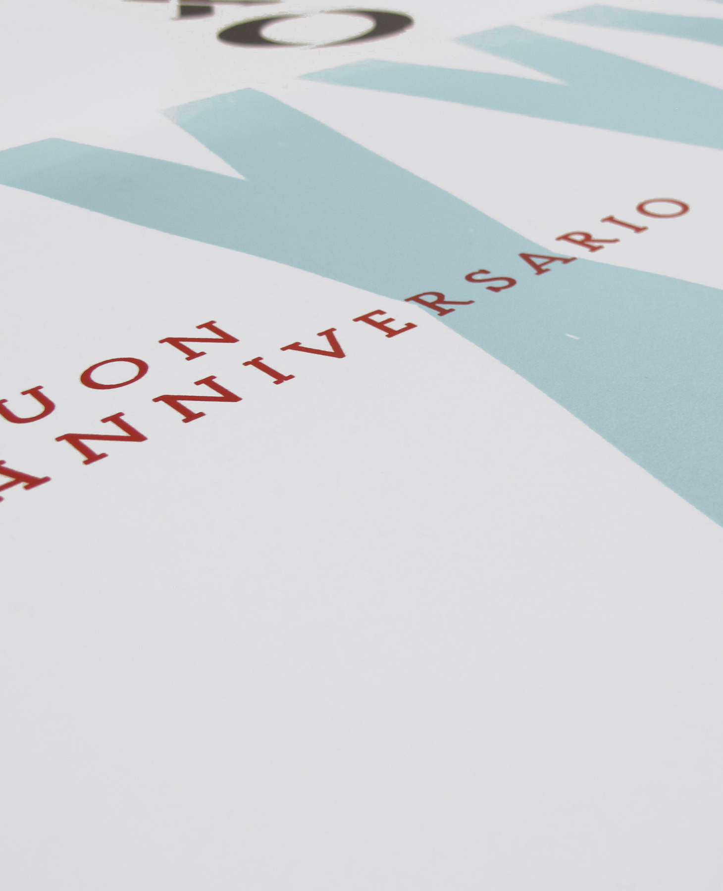 Letterpress printed in four colours onto 120 g Fedrigoni Ivory Smooth from handtypeset original wood and metal typefaces