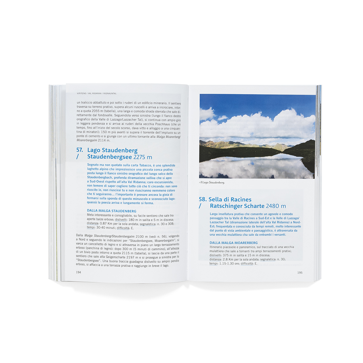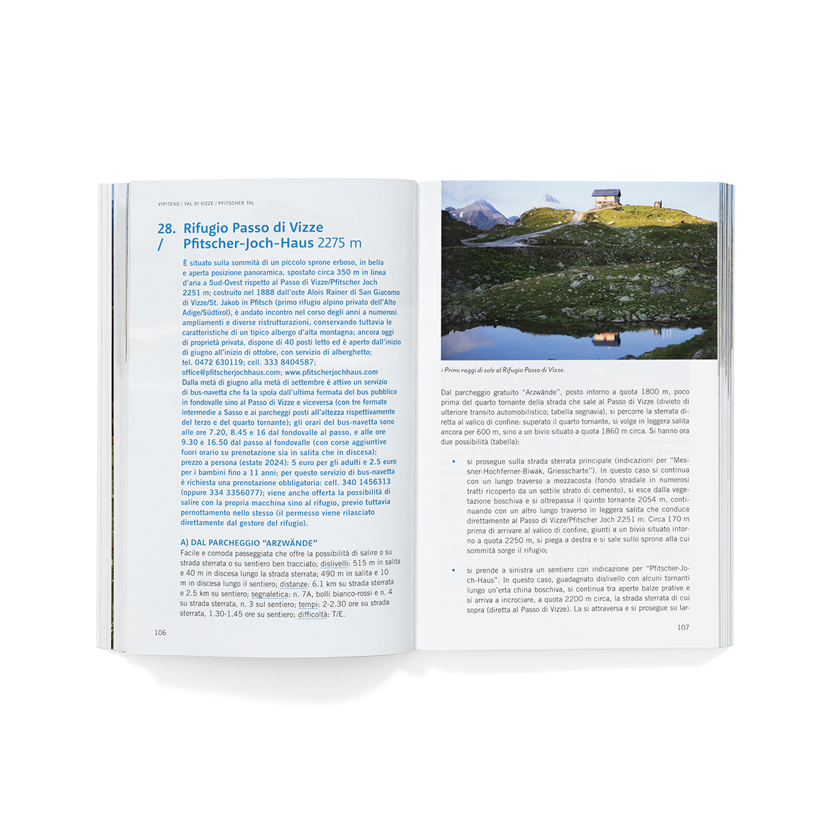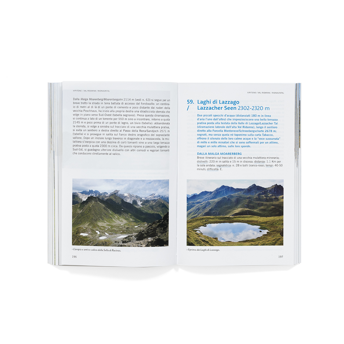 Il volume raccoglie il risultato di tante luminose giornate trascorse dall’autore tra le montagne e le vallate che fanno capo alla splendida città di Vipiteno, inserita a pieno titolo nella prestigiosa Associazione “I Borghi più belli d’Italia” e meta turistica d’eccellenza, con le sue caratteristiche case dai colori vivaci, gli antichi portici, gli stretti vicoli medioevali e le numerose insegne dei mestieri in ferro battuto che ne abbelliscono la via principale. Questa è una guida completa e preziosa, unica nel suo genere, in grado di offrire un eterogeneo ventaglio di passeggiate alpine, adatte sia a escursionisti principianti (con modesta o nessuna esperienza di montagna) sia a gruppi familiari (con al seguito bambini di diversa età) sia ad alpinisti provetti (desiderosi magari di cimentarsi in facili ma più avventurose traversate su ghiacciaio). L’opera descrive in modo molto accurato 107 mete escursionistiche a malghe, rifugi e laghi in Alta Val d’Isarco, in Val di Vizze, in Valle del Giovo, in Valle di Racìnes, in Val Ridanna e in Val di Flères, comprendendo anche alcuni itinerari a partenza dal Passo di Pènnes, dal Passo Giovo e dal Passo del Brènnero.